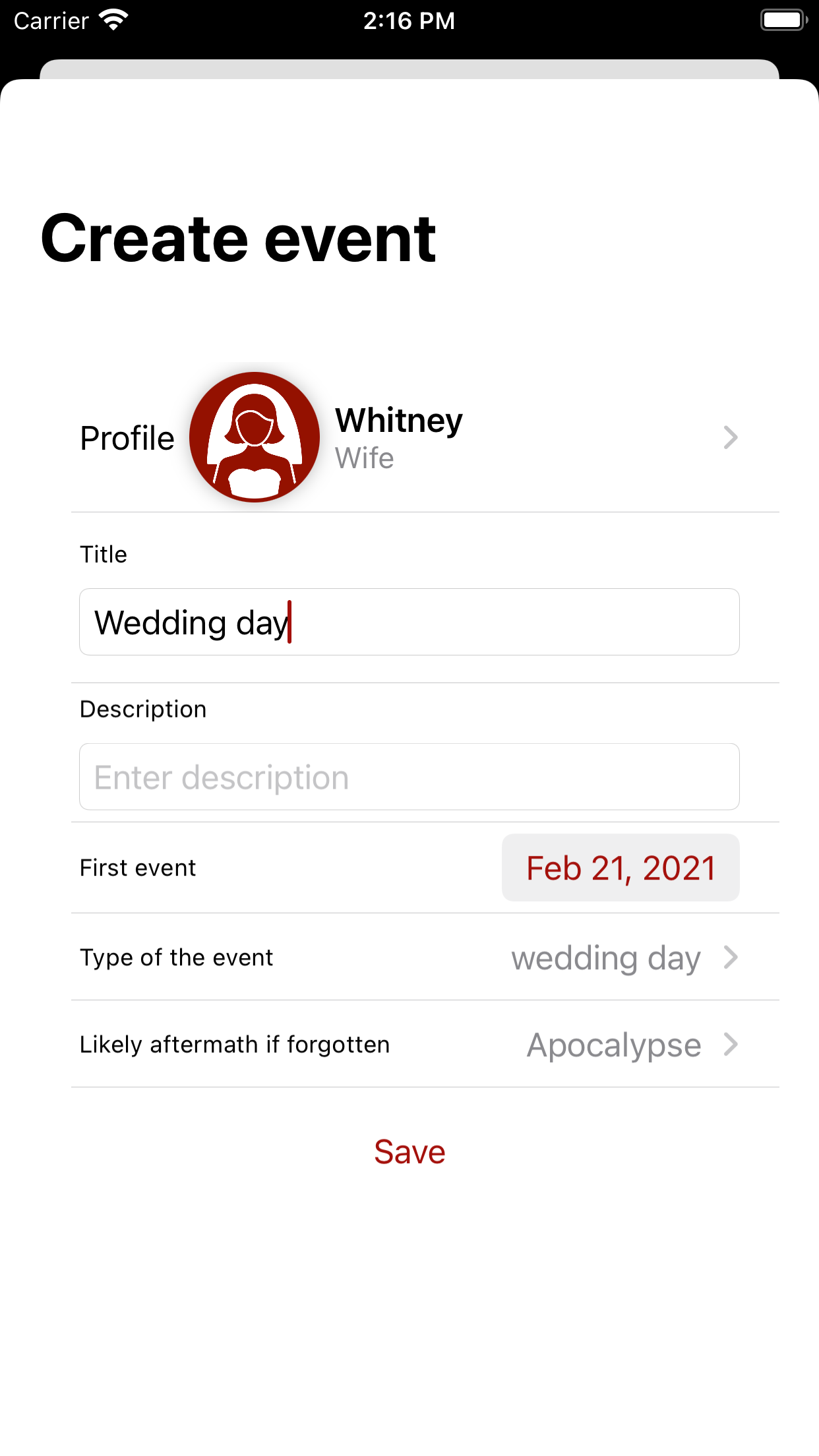 Never forget her birthday, wedding day, or the day you had your first fight or kiss. Become the encyclopedia of your relationship dates and times – you can tell her exactly how many days you have been together, or how many days until the next anniversary for any event. You can also categorize anniversaries so that forgotten events can be mitigated with the correct actions.